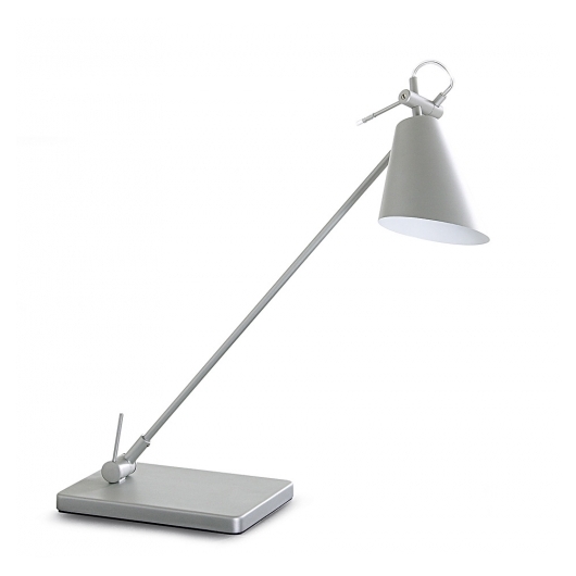 Lampehodet kan vendes 90° og gir et meget godt lys på arbeidsflaten. Armen er 2-leddet og den firkantete bordfoten er vektbelagt og sørger for god stabilitet.