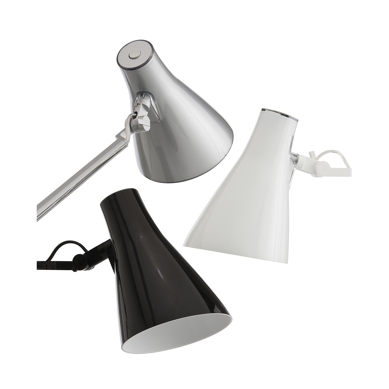 • Dobbel aluminiumsarm med 3 ledd roterende på en bordfot.