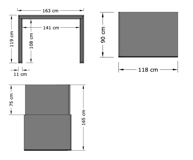 Teknisk: Justeres trinnløst i høyde 90 – 167 cm. med hjelp av en styringspanel som monteres enkelt til under bordplatens høyre side, og kan programmeres i tre valgfrie høyder